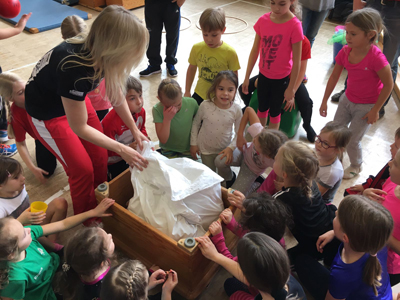 Akrobatik-Übungen auf der AirTrack-(Luftkissen-)Bahn. Am selben Tag stand